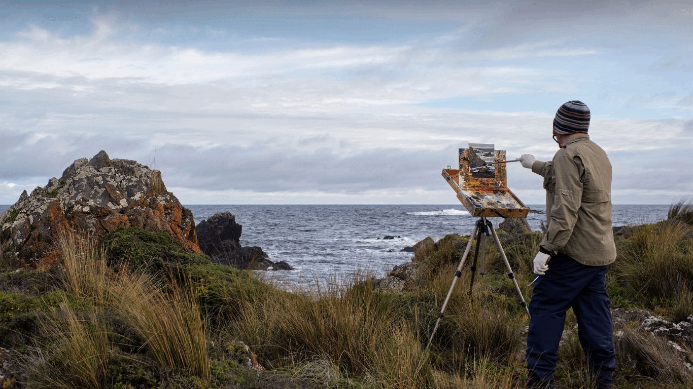 A 4th generation Tasmanian, his works are not simply representations of place, rather embodied responses to it.